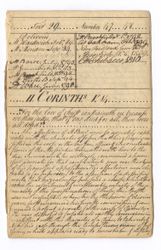 Creator: Holt, Thomas, 1762-1836 Date: 1789-1810 Contributing Institution: Congregational Library and Archives Description: This item contains two sermons preached by Rev. Thomas Holt on 2 Corinthians 5:14. The first sermon to appear in the records was preached in Hardwick, Massachusetts on February 1, 1789. The second sermon was preached in Chebacco, Massachusetts in 1810. View Full Item at Congregational Library and Archives -
